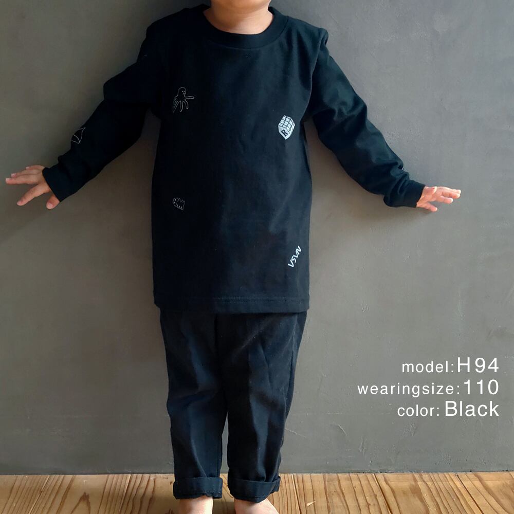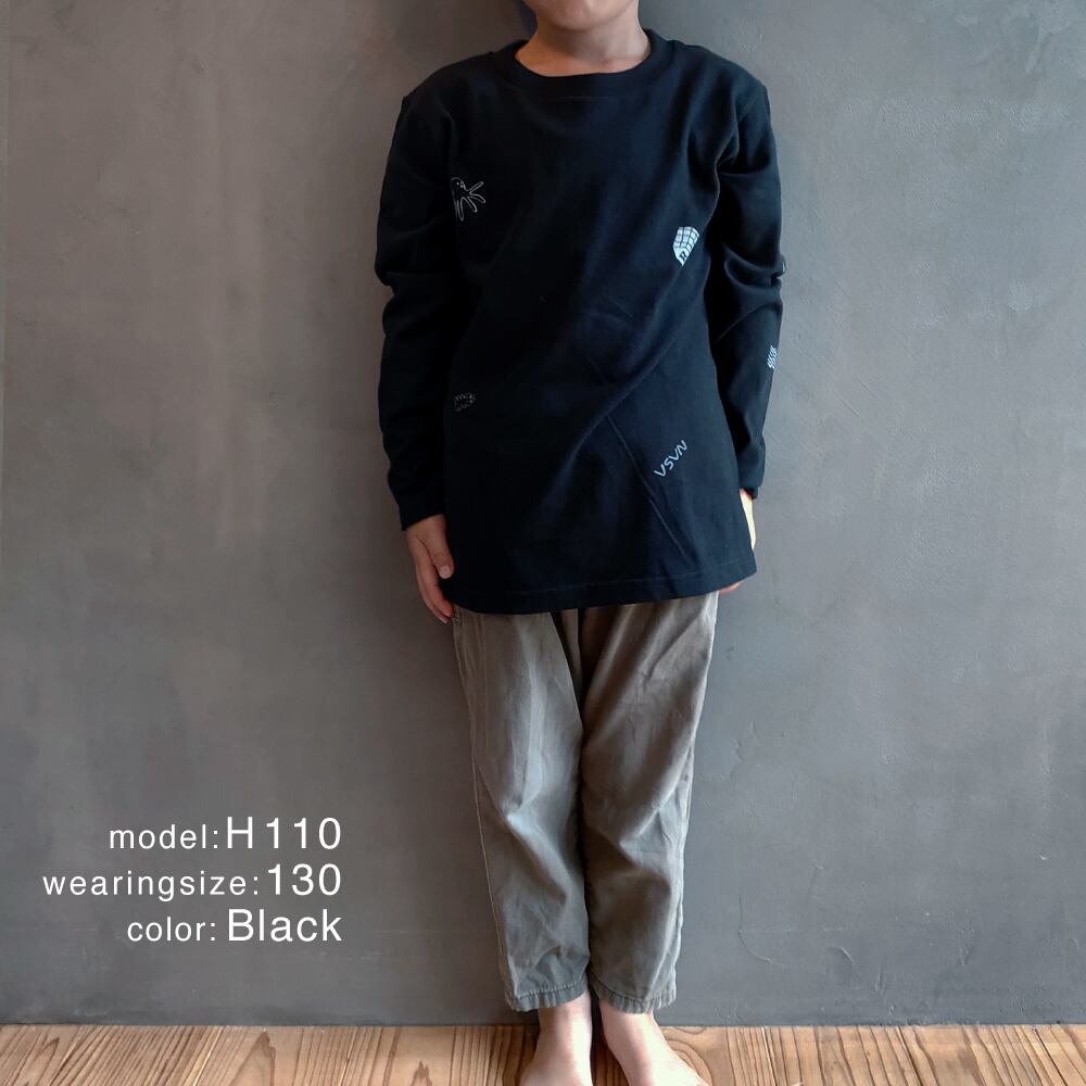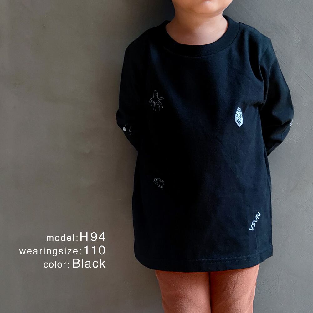 宇宙柄の長袖Tシャツ。