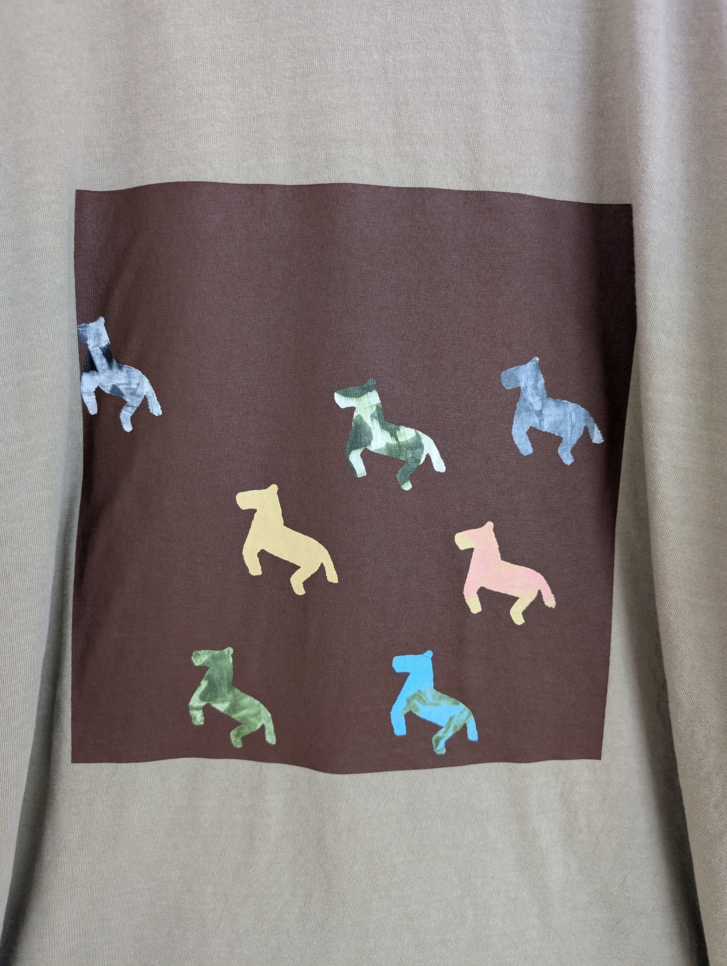 色々な色が混ざっている毛糸をイメージして刷りました。